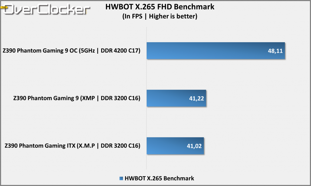 HWBOT x265 Benchmark is based on the open source x265 encoder (http://x265.ru/en/). It can take advantage of modern CPUs instructions set and multithread support is also very good. However this benchmarks is also capable of running even on as old processors as AMD Athlon or Intel Pentium III. Of course on the legacy hardware the encoding time is rather long. There are two presets available – 1080p and 4k. The main goal of both of them is to convert H264 source video to H265/HEVC and measure average fps. This test benefits both from CPU and memory tuning, so a good combination of both helps increase the score/performance. The 4K version works well as a stability tester as well, when using overkill mode.