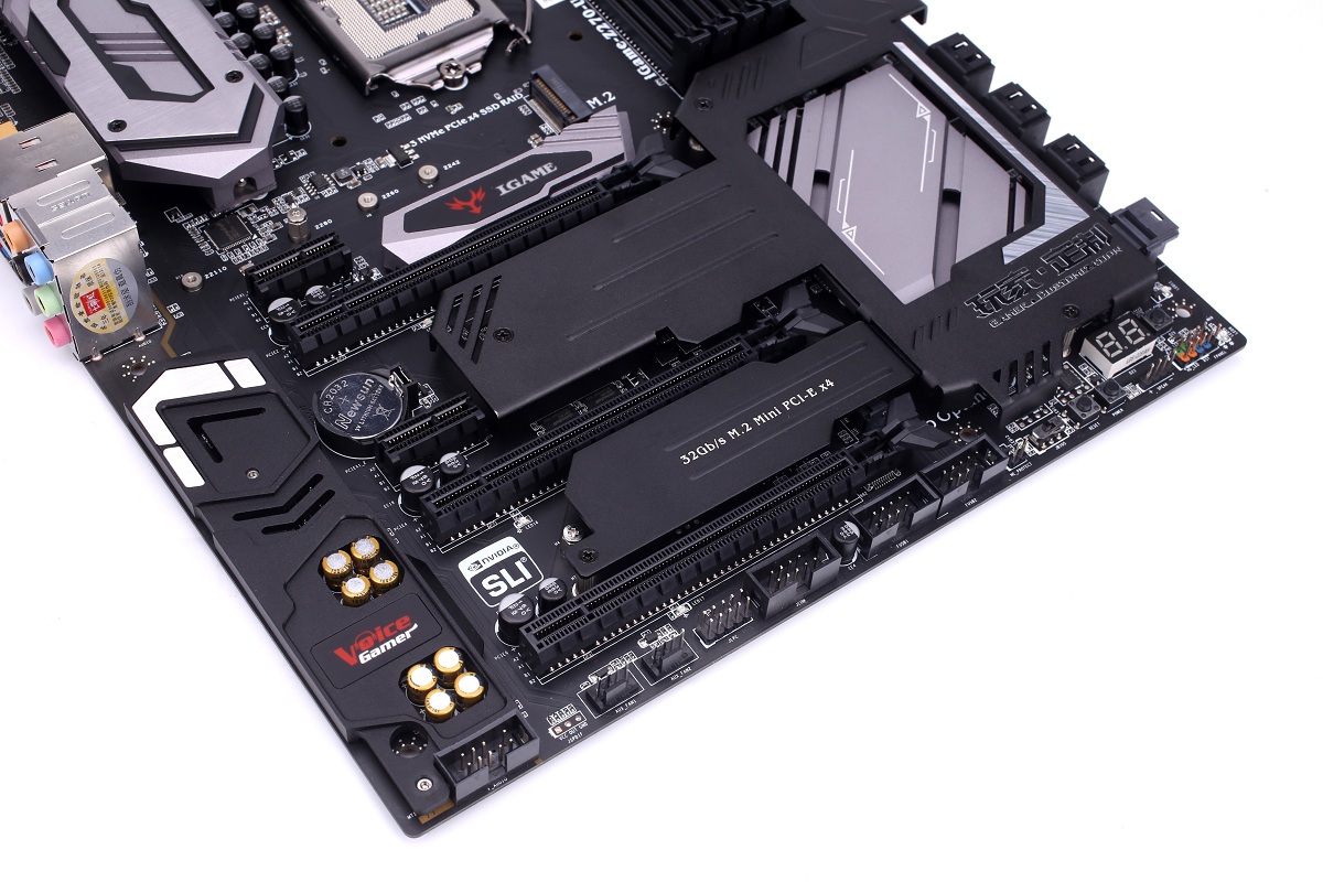 The iGame Z270 Ymir-U features a unique motherboard cooling technology dubbed Metal Armor which features large heatsinks that have overlapping dual-colors on it armored exterior and audio-reactive lighting via the GamerVoice 2.0 audio system. After being upgraded to version 2.0, the RGB lighting of the iGame Z270 Ymir-U combined with the upgraded GamerVoice will “dance” to the music of your system which is fully customizable via the BIOS interface. GamerVoice features a completely independent audio solution and allows user-customizable audio chips so enthusiasts can freely swap-out audio chips as they please. Advanced audio circuit separation allows enthusiast-level headphones to be driven even at 600Ω resistance.