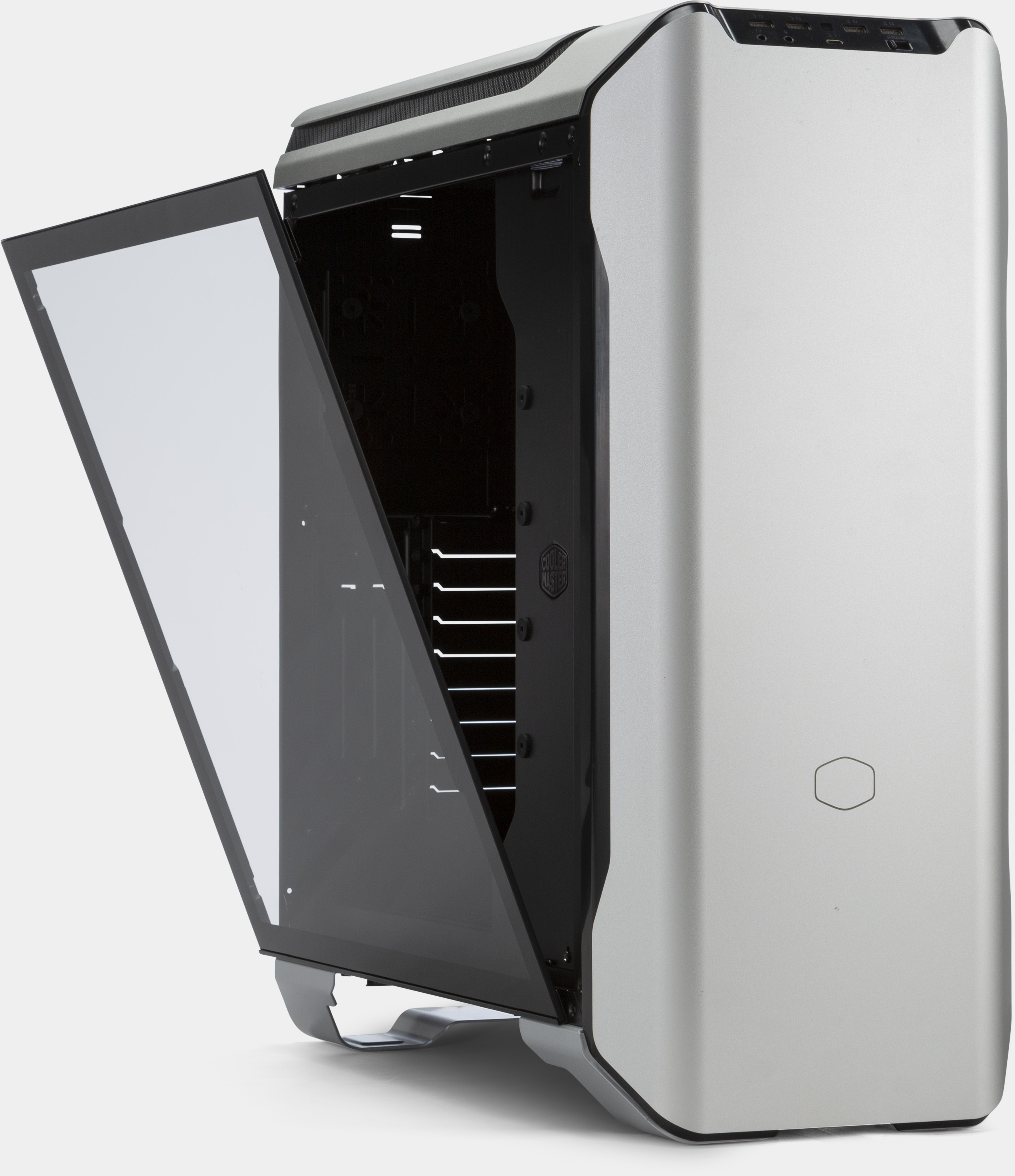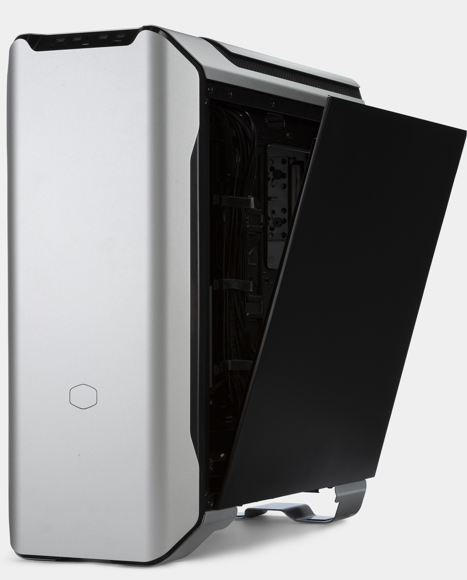 The front of the case is a solid silver sheet of metal with very little styling. Other than a Cooler Master logo about a third of the way up the case there is no styling apart from the angled edges. Overall it is a very elegant and inconspicuous design. Thankfully the finish on the MasterCase SL600M is rather resilient to fingerprints and dust. This means that you won’t have to wipe it down after every touch, and dust simply blows away.