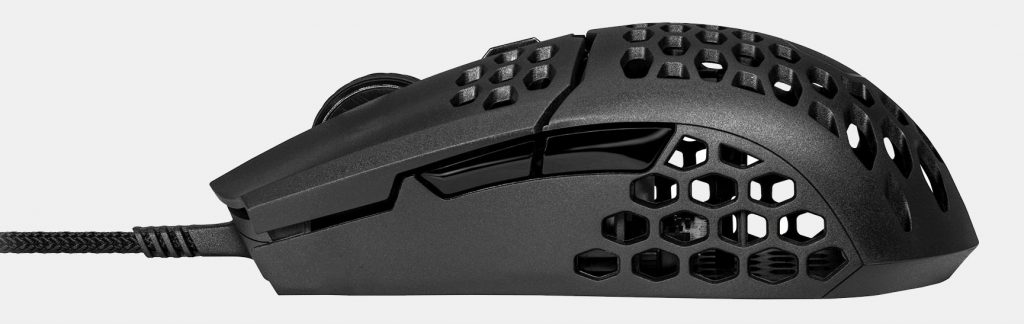 The honeycomb mesh design means that there is minimal contact with your hand, keeping your hand less sweaty. This is extended to the primary buttons, which each have seven holes. The entire shell and primary buttons have a matte finish, while the DPI selector and thumb buttons are glossy. This will naturally be different on the versions with a glossy finish.