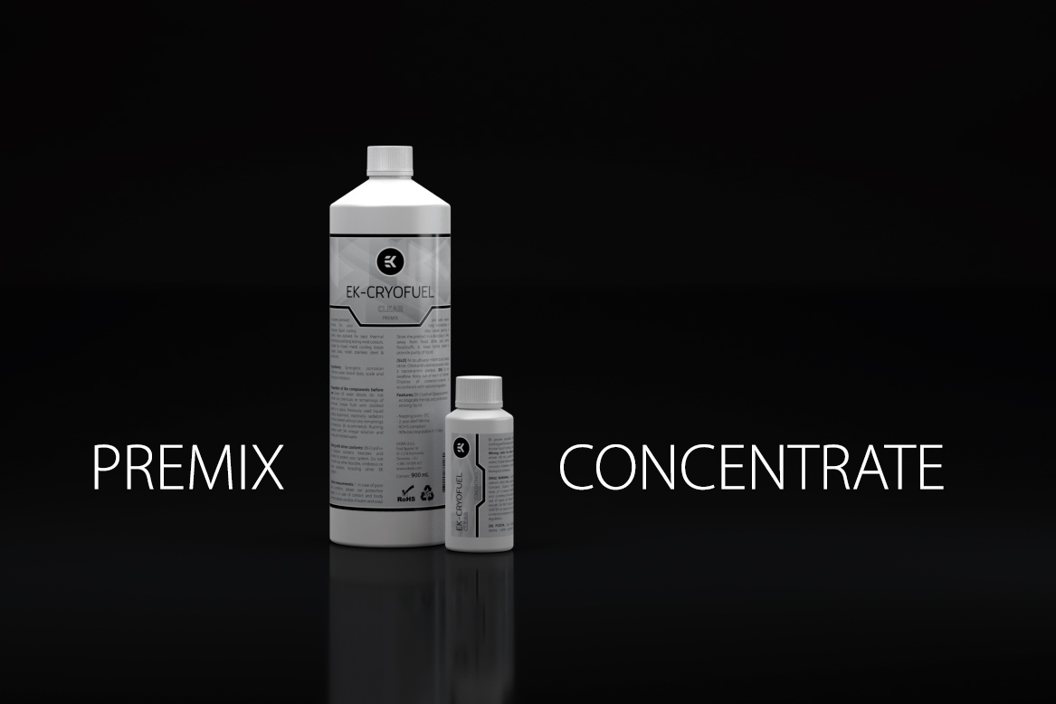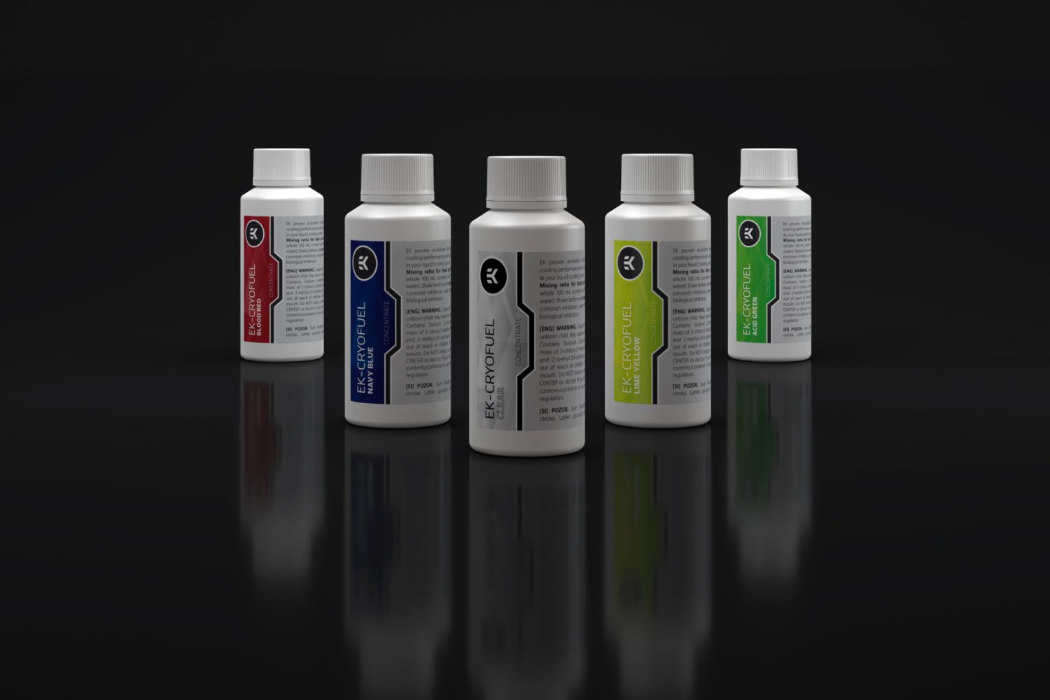 EK-CryoFuel is also available as a concentrate, available in a 100mL bottle and has to be mixed with distilled water in ratio 1:9 to form 1L of ready-to-use coolant. Like the premixes EK-CryoFuel concentrates are available in Clear (transparent), Blood Red, Navy Blue, Lime Yellow and Acid Green color.