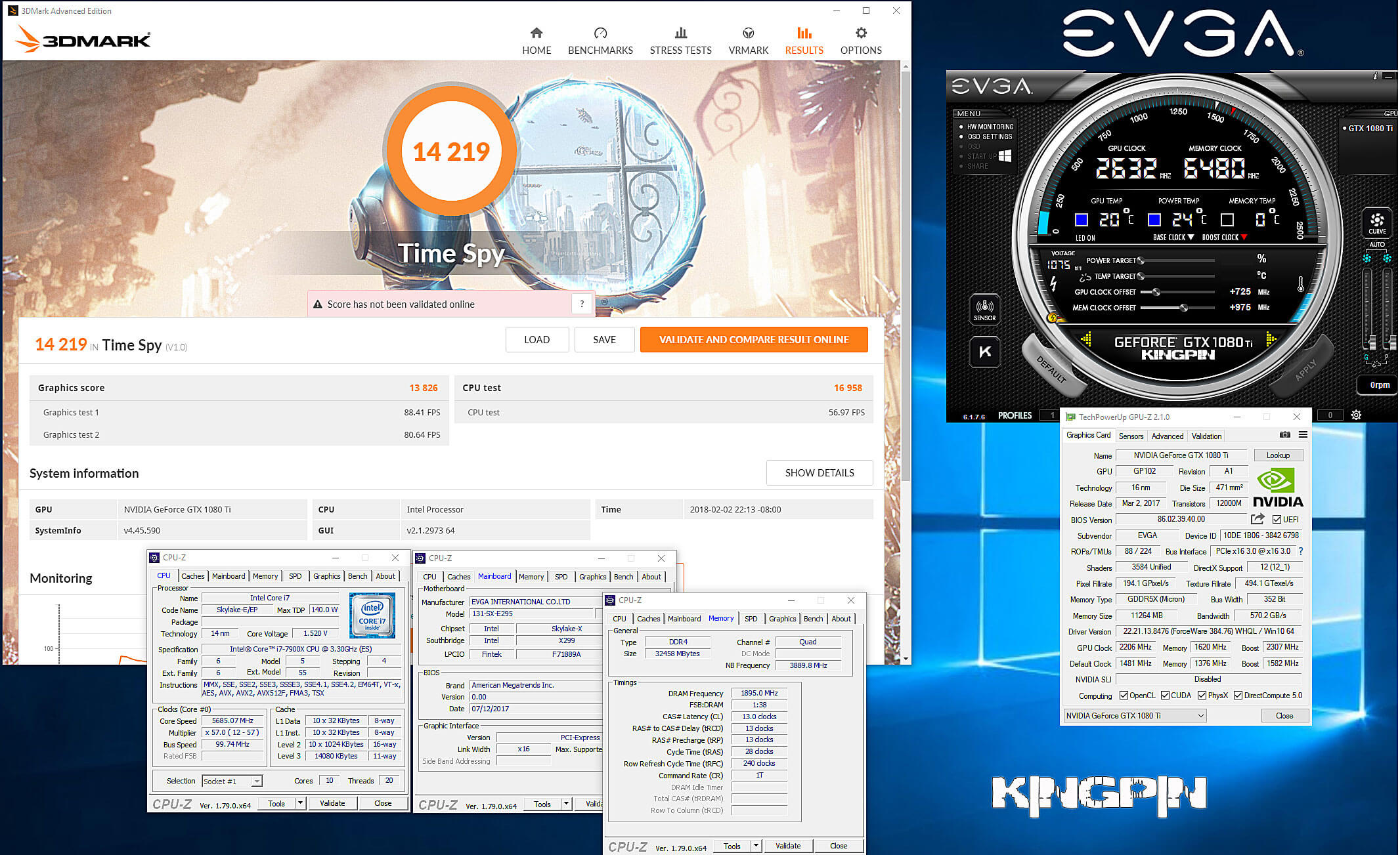The GeForce GTX 1080 Ti was designed to be the most powerful desktop GPU ever created, and indeed it was. EVGA built upon its legacy of innovative cooling solutions and powerful overclocking with its GTX 1080 Ti SC2 and FTW3 graphics cards. Despite the overclocking headroom provided by the frigid cooling of EVGA’s patented iCX Technology, the potential of the GTX 1080 Ti still leaves room for one more card at the top…and man is it good to be the K|NG.
