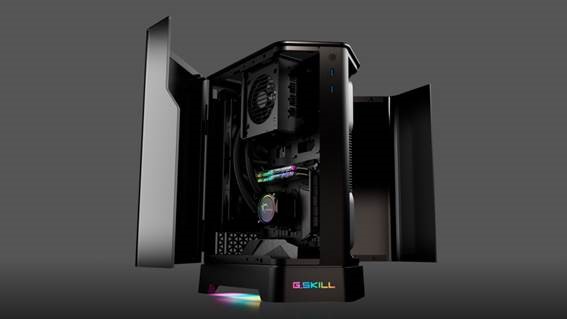 The G.SKILL Z5i is a uniquely crafted mini-ITX case with curved 4mm tempered glass side panels that wrap around the precision-made single-piece aluminum exterior frame to form a 5-sided case, showcasing the dual-chamber design so internal hardware components can be viewed from both sides. To enable a cleaner workspace, the Z5i is created with a bottom-facing motherboard I/O panel so cables can be neatly and easily managed.