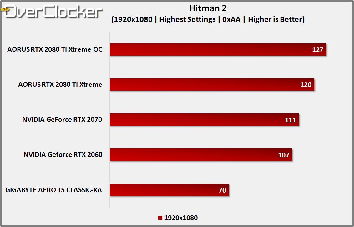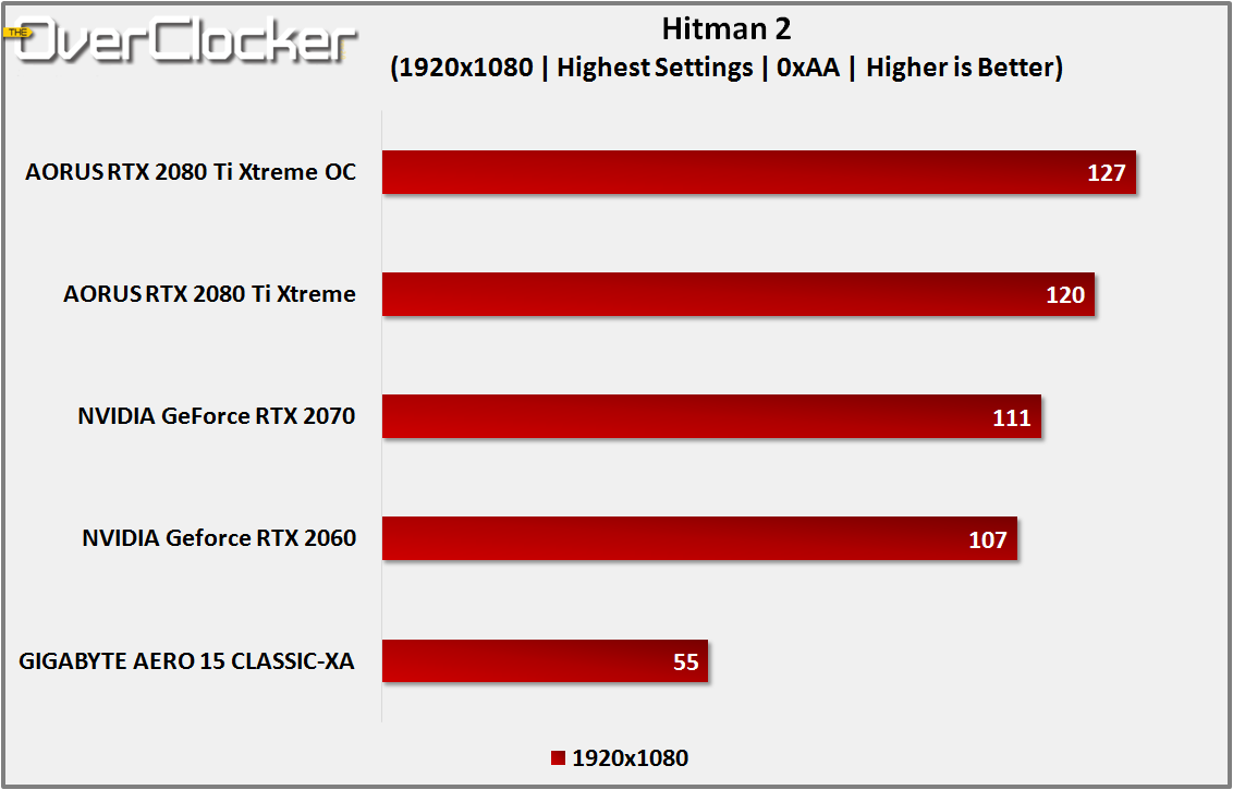 Everyone’s favourite Silent Assassin returns in Hitman 2, looking more glorious than ever. Although the game only supports DirectX 11 at the moment, IO Interactive has promised to add DirectX 12 support in the future. For now, we’re stuck with benchmarking DirectX 11. There is a benchmark batch file in the main directory of Hitman 2, and three changes were made. Firstly, the target GPU had to be changed from the Intel iGPU to the NVIDIA GPU. Secondly, the resolution was dropped from 3840×2160 to 1920×1080. Lastly, V-Sync was disabled.