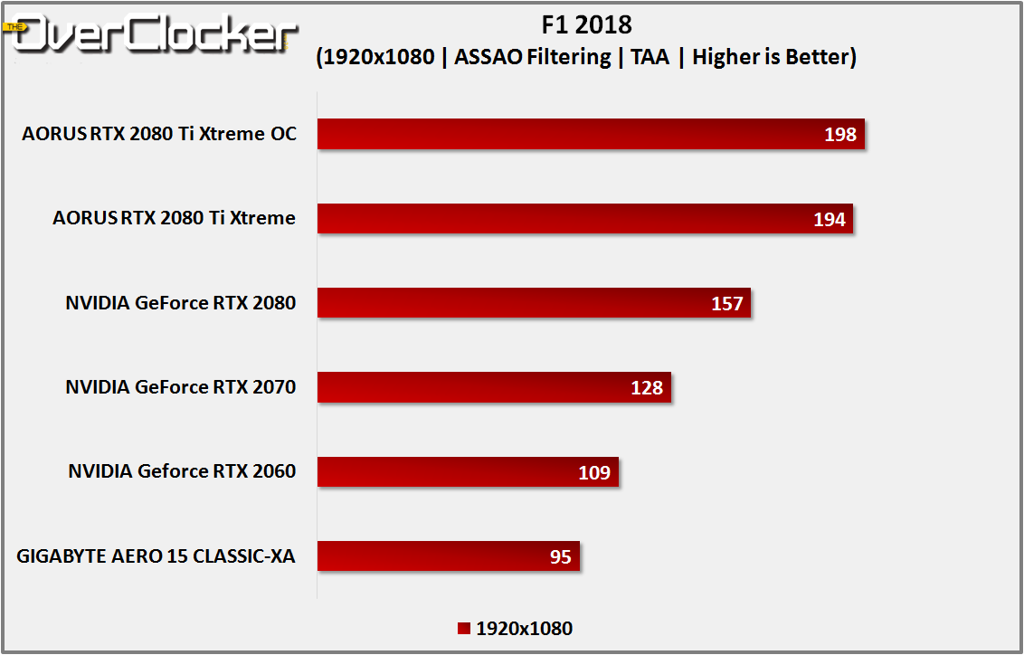 Codemasters’ F1 2018 is one good looking game, and extremely popular amongst driving fans. Testing was done at 1920×1080 using the Ultra preset with ASSAO filtering and TAA anti aliasing enabled. Essentially the settings were maxed out for the selected resolution. The track used was Australia with heavy rain.