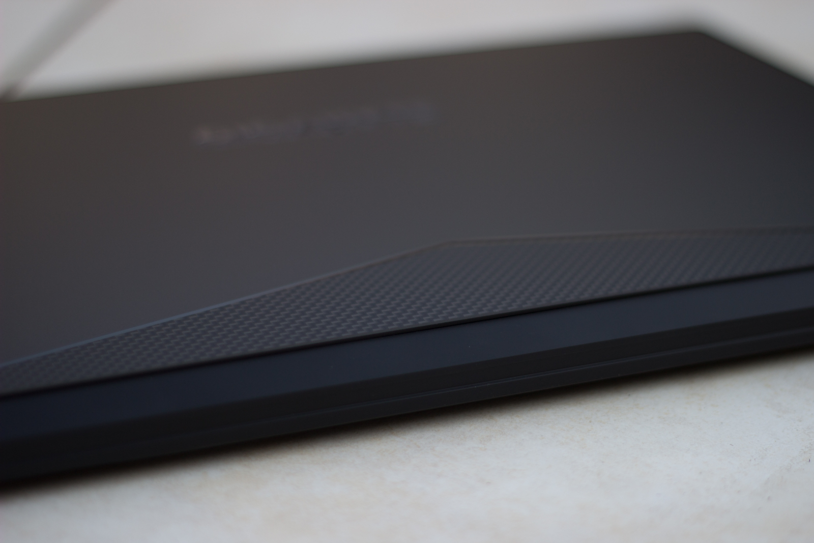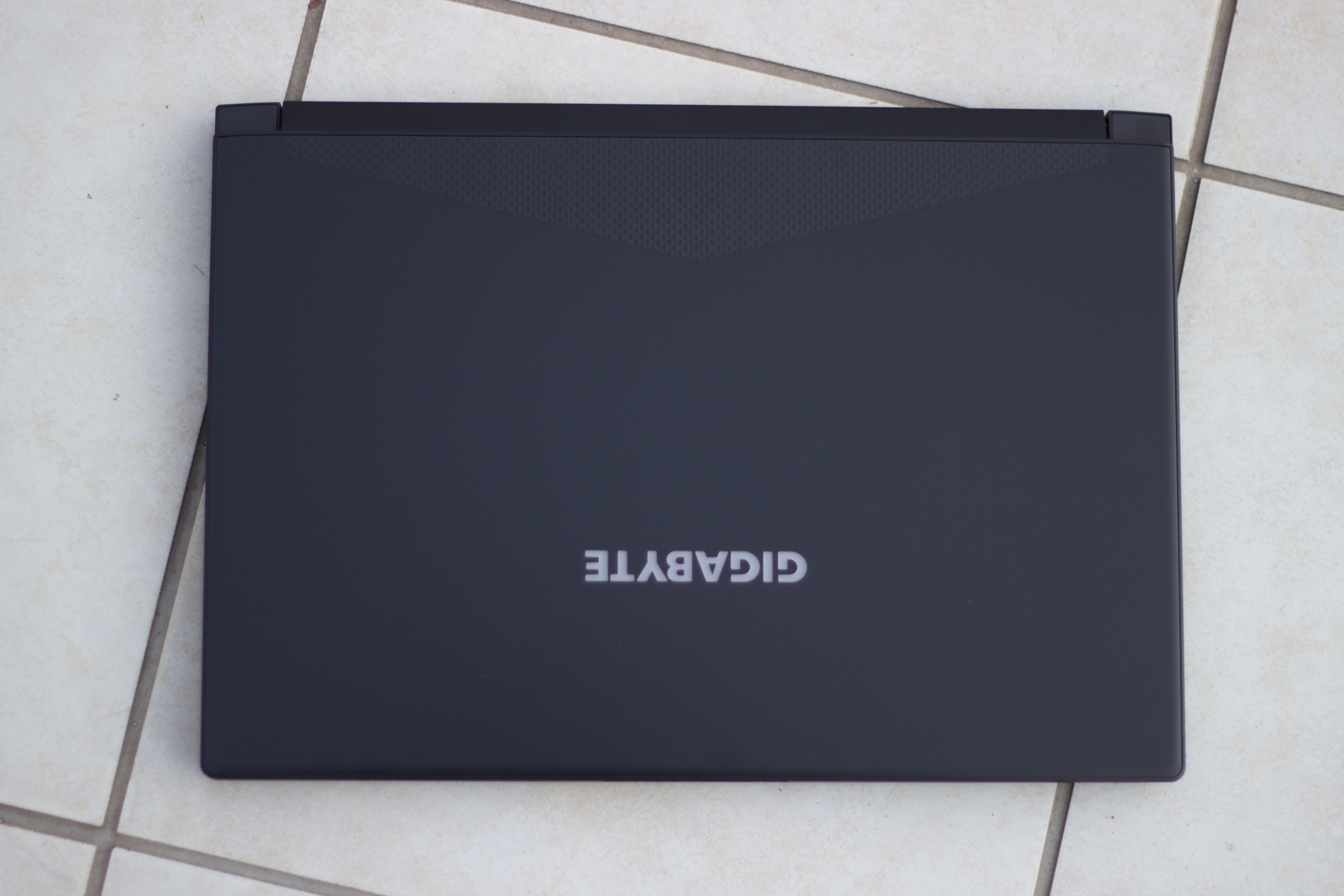 The first thing you’ll notice in the big brown box is a grey backpack with orange accents and a GIGABYTE M6880 mouse. Neither of these are worth writing home about, so we’ll skip to the laptop itself. Taking the GIGABYTE AERO 15 CLASSIC-XA out of the box, you’re greeted by a fairy standard looking laptop. Unlike many others, there are no flashy colours or designs that scream “gaming laptop.” The logo lights up white, and there is a triangular carbon fibre finish along the bottom edge of the lid. Externally, nothing about the laptop says that it is anything more than a standard business machine.