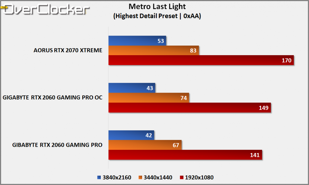 For a title from 2014, Metro Last Light Redux continues to be taxing to even modern day graphics cards. Be it you view this as sub-optimal tuning or what have you, it’s clear once again that you’re better off at 3440×1440 and lower if you’re using the RTX 2060. The 2070 can handle 4K and so too will all better performing GPUs.