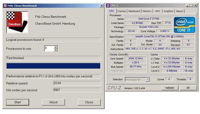 Intel’s upcoming processors based on the 22 nm “Haswell” microarchitecture are due on 2 June 2013, and as with every new family of CPUs we’re getting the first leaked benchmarks about four months before release. Before us today is an engineering sample Haswell processor which is running at 2.60 GHz with a very low core voltage of 0.889V – a big step towards the lower power requirements Intel is aiming for with Haswell. The CPU in question was pitted against the current generation “Ivy Bridge” Core i7-3770K and “Vishera” AMD FX-8350, both of which were run at the same 2.60 GHz in order to give an accurate measure. The benchmark used was the popular Fritz Chess Benchmark.