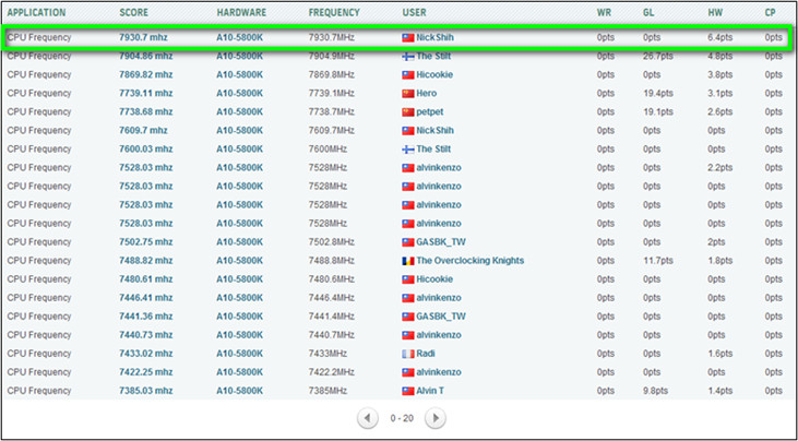 A phenomenal 7930.69 MHz by an AMD A10-5800K APU