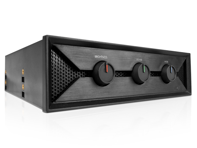NZXT, a company built on realizing the dreams of gamers worldwide, is proud to announce Hue, an LED configurator that grants PC enthusiasts the power to completely customize chassis illumination. With three RGB controls, Hue enables users to adjust the color fade, pulsating light effects, and brightness levels of your internal LED sleeve. It also features a simple on/off switch in so you can quickly turn down the lights while watching a movie or heading to bed after a marathon gaming session. Installation is a breeze with Hue’s stealthy mesh design that blends flawlessly into the façade of any front panel.