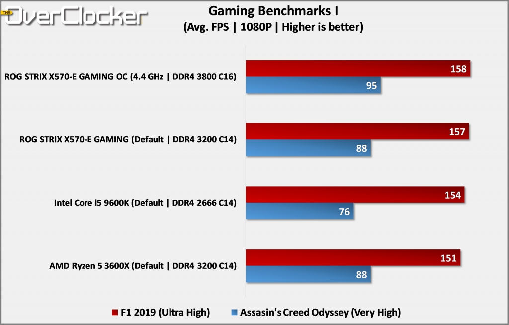 The ROG STRIX X570-E Gaming shows itself to be quite strong in gaming when paired with the Ryzen 7 3800X. While not a direct comparison, it’s wonderful to see that at default settings, the platform can match and outpace the Intel Core i5 9600K. A low bar perhaps, but consider that the previous generation X470 and matching CPUs couldn’t achieve this, even when overclocked.